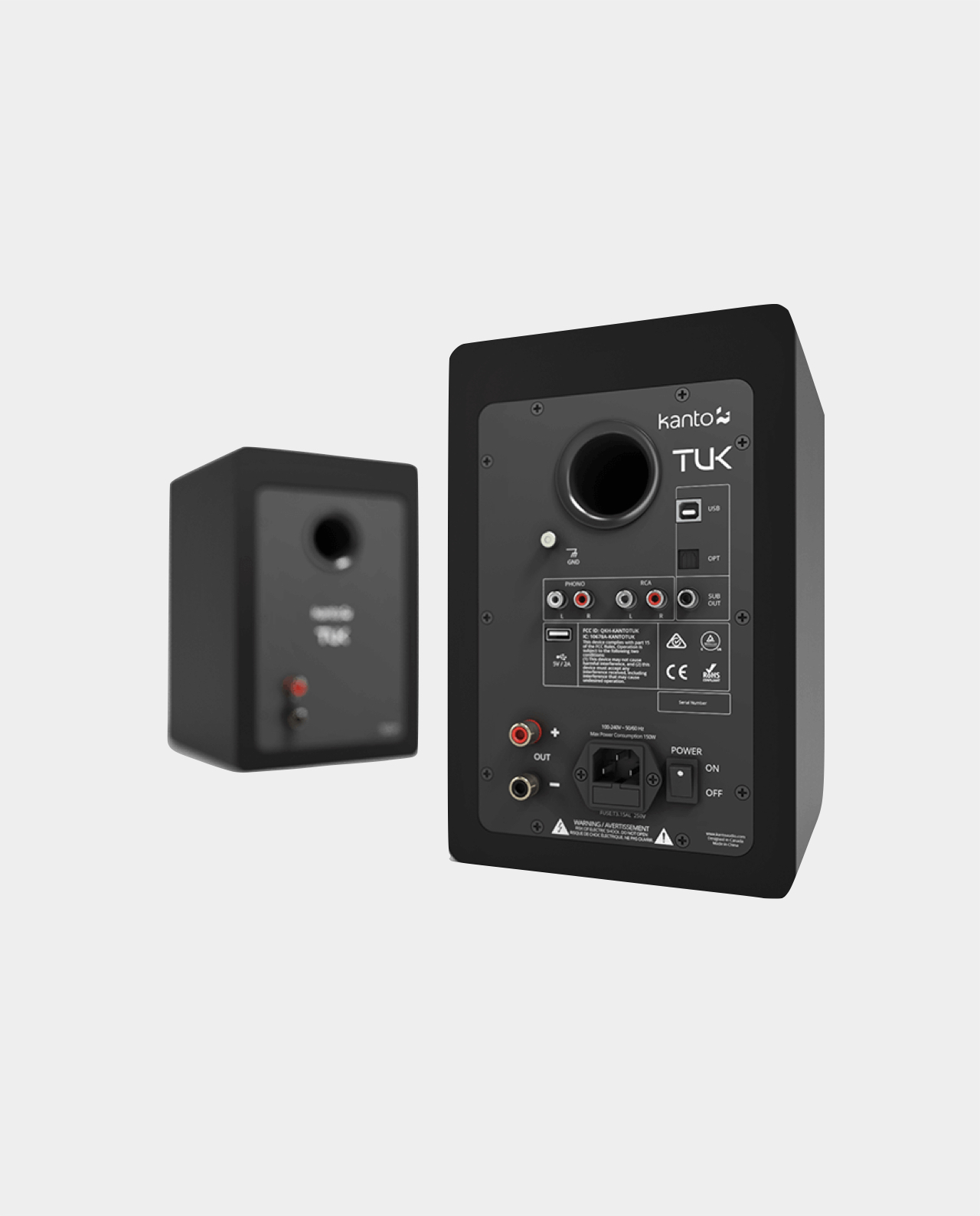 Come tutti i diffusori amplificati Kanto, TUK è dotato di un’uscita per subwoofer. Ma TUK aggiunge il vantaggio di un crossover attivo selezionabile. Il filtro passa-basso invia tutte le frequenze inferiori a 80 Hz al subwoofer, mentre il filtro passa-alto invia tutte le frequenze superiori a 80 Hz ai diffusori. Questo permette all’amplificatore integrato di TUK di concentrarsi esclusivamente sulle frequenze medie e alte. I transienti rapidi e dinamici risultano più incisivi e precisi, e TUK può riprodurre il suono a volumi più elevati senza introdurre distorsioni aggiuntive. L’uscita subwoofer può essere attivata o disattivata premendo un pulsante sul telecomando.